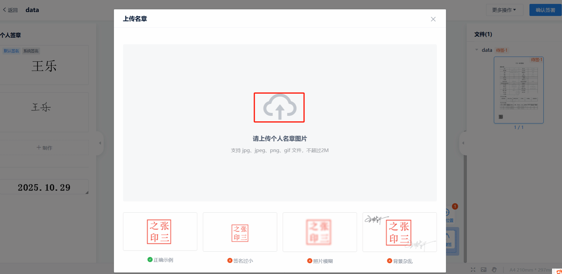 或者上传个人名章图片,完成个人名章制作。