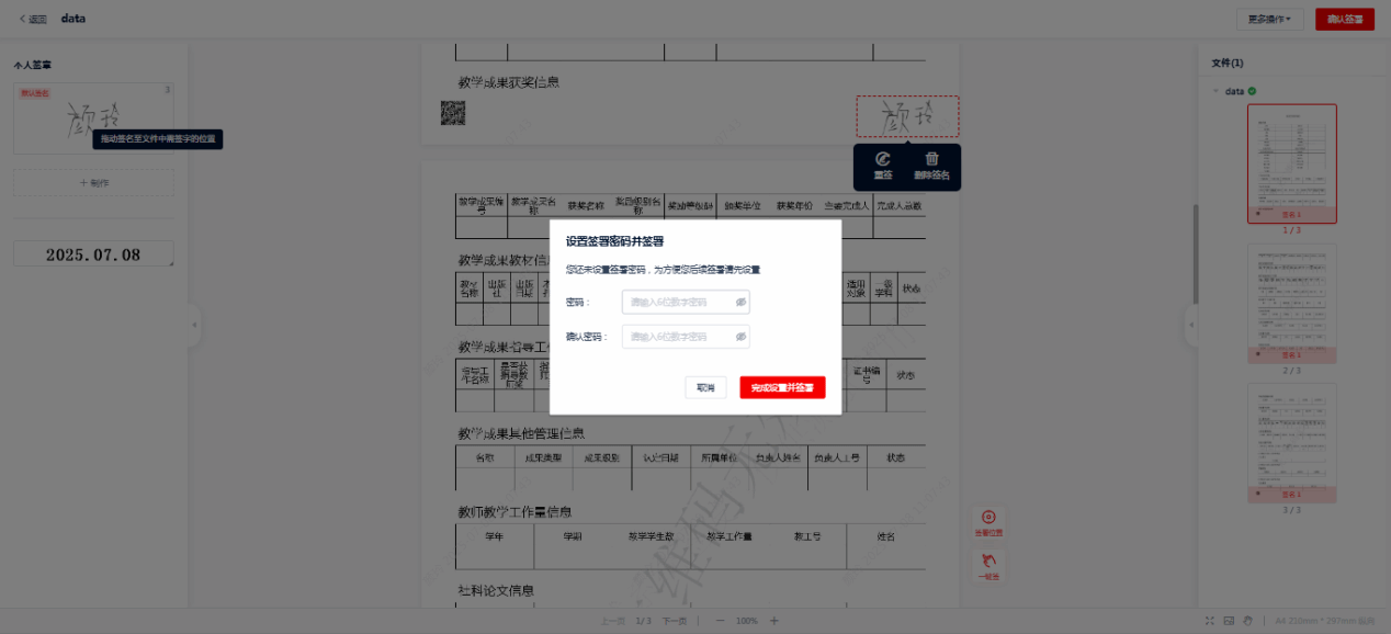 输入签署专用密码,或者手机验证码进行签署确认。